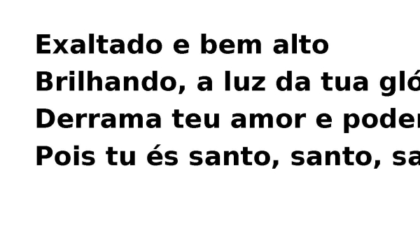 - Exaltado e bem altoBrilhando, a luz da tua glóriaDerrama teu amor e poderPois tu és santo, santo, santo
