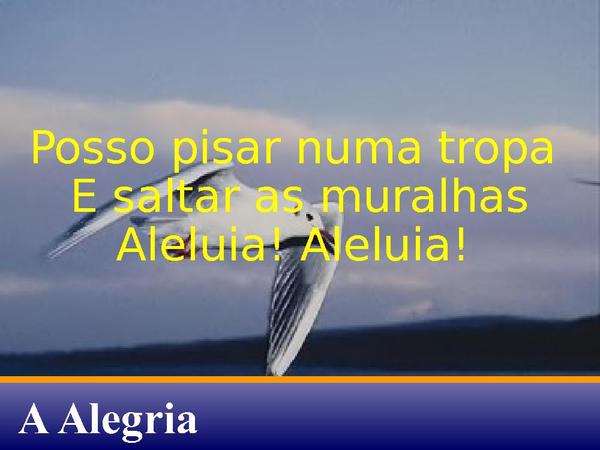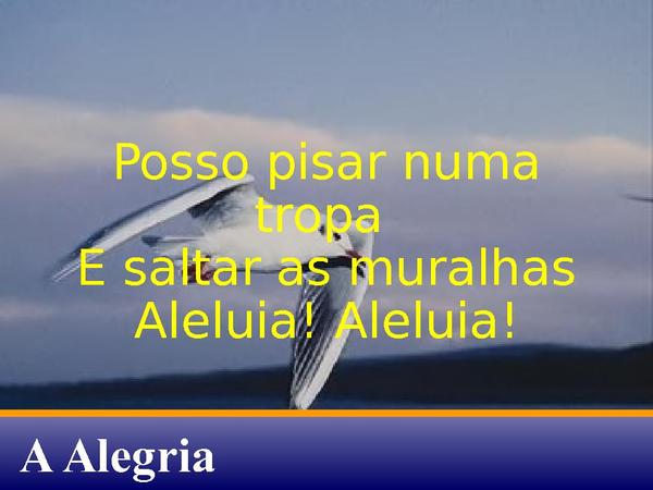 - Posso pisar numa tropa E saltar as muralhasAleluia! Aleluia!