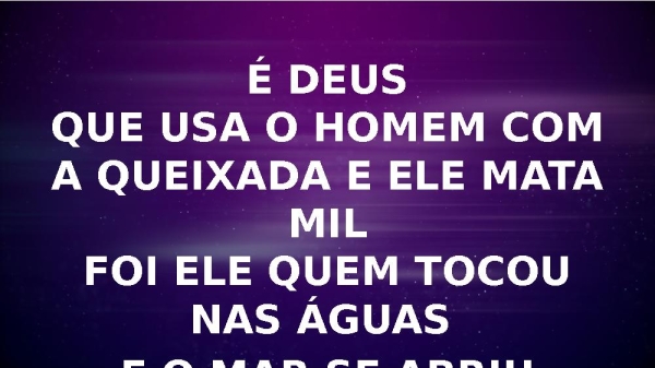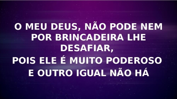 - O MEU DEUS, NÃO PODE NEM POR BRINCADEIRA LHE DESAFIAR, POIS ELE É MUITO PODEROSO E OUTRO IGUAL NÃO HÁ