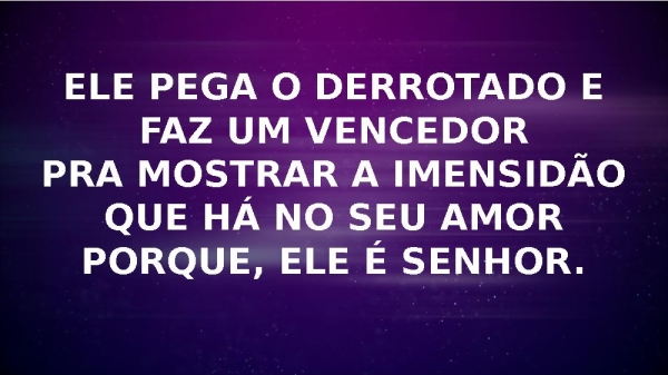 - ELE PEGA O DERROTADO E FAZ UM VENCEDORPRA MOSTRAR A IMENSIDÃO QUE HÁ NO SEU AMORPORQUE, ELE É SENHOR.