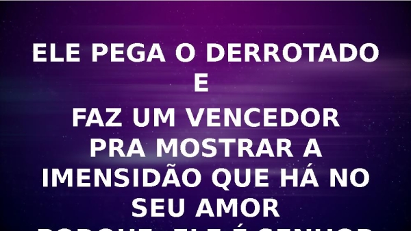 - ELE PEGA O DERROTADO E FAZ UM VENCEDORPRA MOSTRAR A IMENSIDÃO QUE HÁ NO SEU AMORPORQUE, ELE É SENHOR