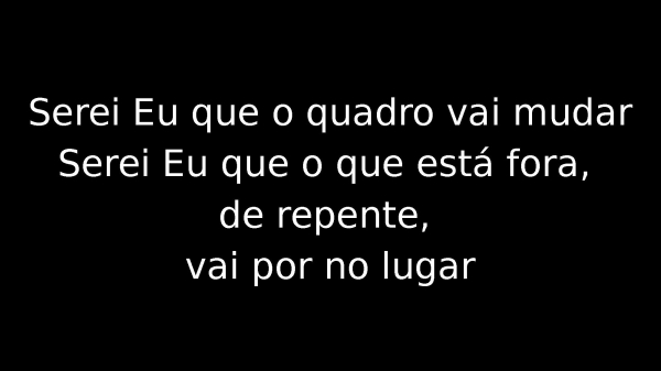- Serei Eu que o quadro vai mudarSerei Eu que o que está fora, de repente, vai por no lugar