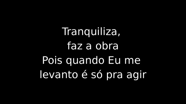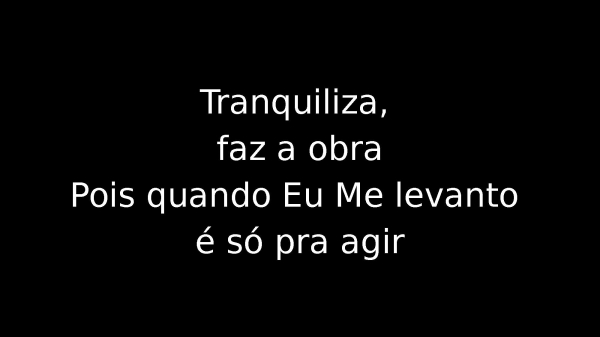 - Tranquiliza, faz a obraPois quando Eu me levanto é só pra agir