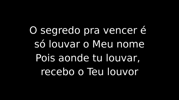 - O segredo pra vencer é só louvar o Meu nomePois aonde tu louvar, recebo o Teu louvor