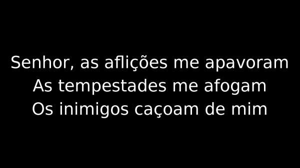 - Senhor, as aflições me apavoramAs tempestades me afogamOs inimigos caçoam de mim