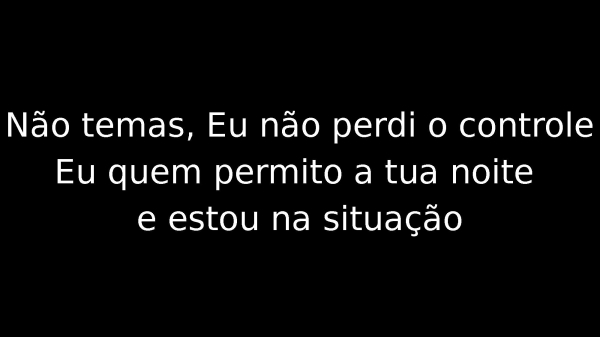 - Não temas, Eu não perdi o controleEu quem permito a tua noite e estou na situação