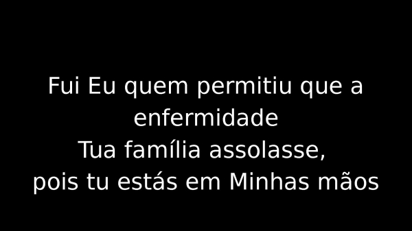 - Fui Eu quem permitiu que a enfermidadeTua família assolasse, pois tu estás em Minhas mãos