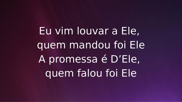 - Eu vim louvar a Ele, quem mandou foi EleA promessa é D’Ele, quem falou foi Ele