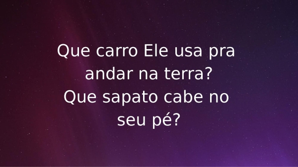- Que carro Ele usa pra andar na terra?Que sapato cabe no seu pé?