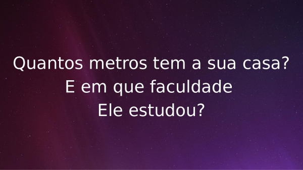 - Quantos metros tem a sua casa?E em que faculdade Ele estudou?