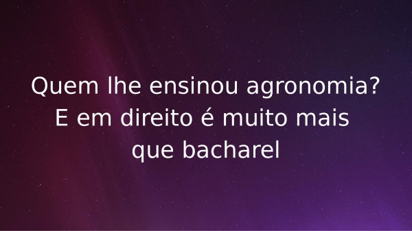 - Quem lhe ensinou agronomia?E em direito é muito mais que bacharel