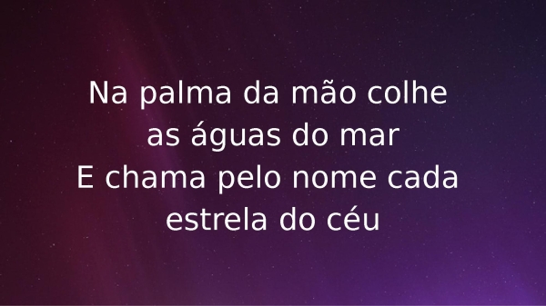 - Na palma da mão colhe as águas do marE chama pelo nome cada estrela do céu