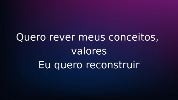 - Quero rever meus conceitos, valoresEu quero reconstruir