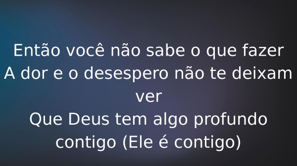 - Então você não sabe o que fazerA dor e o desespero não te deixam verQue Deus tem algo profundo contigo (Ele é contigo)