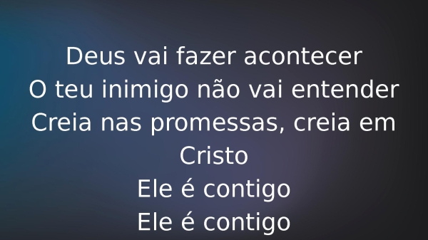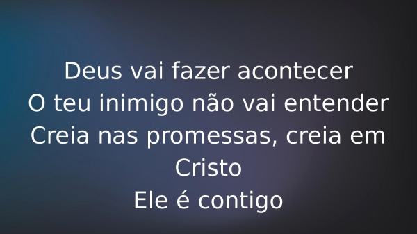 - Deus vai fazer acontecerO teu inimigo não vai entenderCreia nas promessas, creia em CristoEle é contigo