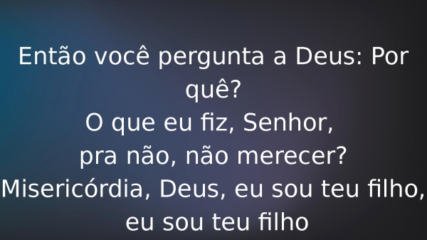 - Então você pergunta a Deus: Por quê?O que eu fiz, Senhor, pra não, não merecer?Misericórdia, Deus, eu sou teu filho, eu sou teu filho