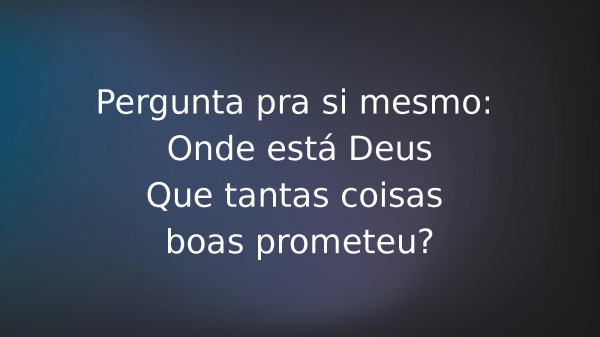- Pergunta pra si mesmo: Onde está DeusQue tantas coisas boas prometeu?