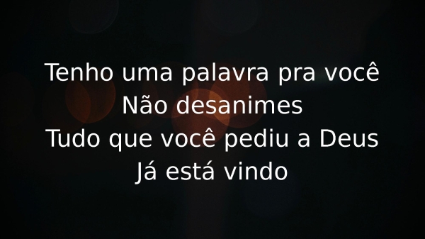 - Tenho uma palavra pra vocêNão desanimesTudo que você pediu a DeusJá está vindo