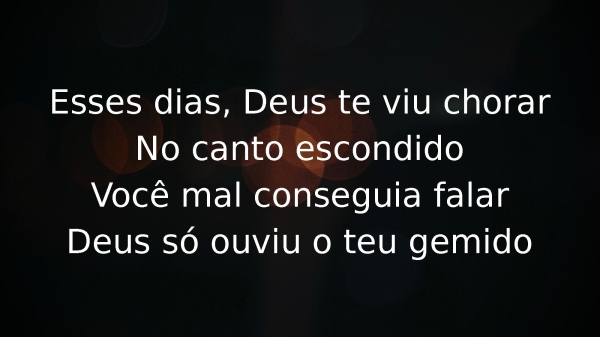 - Esses dias, Deus te viu chorarNo canto escondidoVocê mal conseguia falarDeus só ouviu o teu gemido