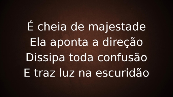 - É cheia de majestadeEla aponta a direçãoDissipa toda confusãoE traz luz na escuridão