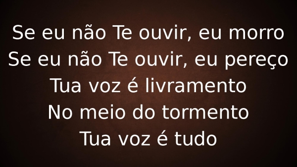 - Se eu não Te ouvir, eu morroSe eu não Te ouvir, eu pereçoTua voz é livramentoNo meio do tormentoTua voz é tudo