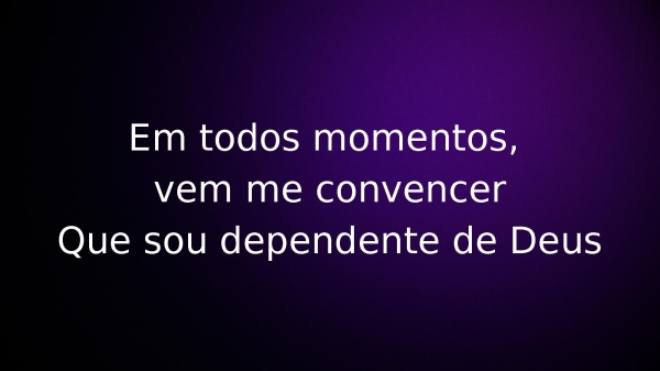 - Em todos momentos, vem me convencerQue sou dependente de Deus