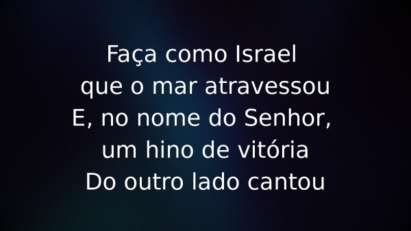- Faça como Israel que o mar atravessouE, no nome do Senhor, um hino de vitóriaDo outro lado cantou
