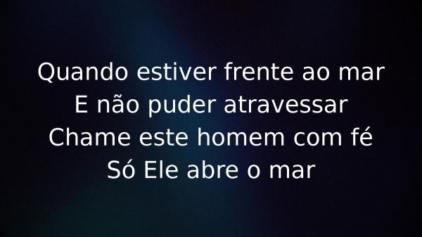 - Quando estiver frente ao marE não puder atravessarChame este homem com féSó Ele abre o mar