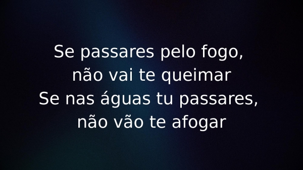 - Se passares pelo fogo, não vai te queimarSe nas águas tu passares, não vão te afogar