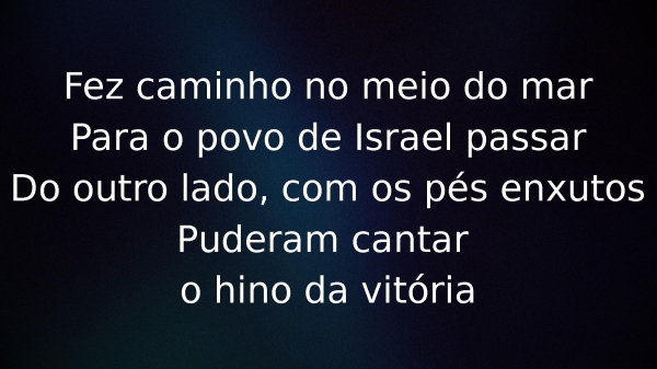 - Fez caminho no meio do marPara o povo de Israel passarDo outro lado, com os pés enxutosPuderam cantar o hino da vitória