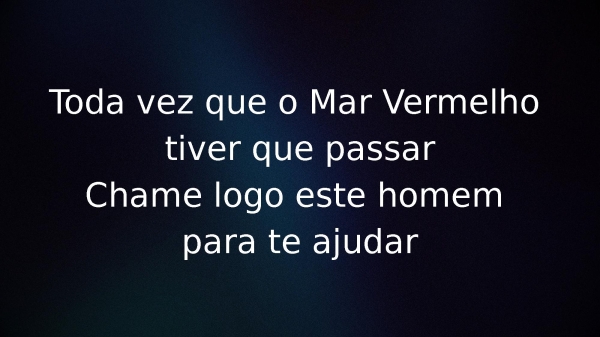 - Toda vez que o Mar Vermelho tiver que passarChame logo este homem para te ajudar