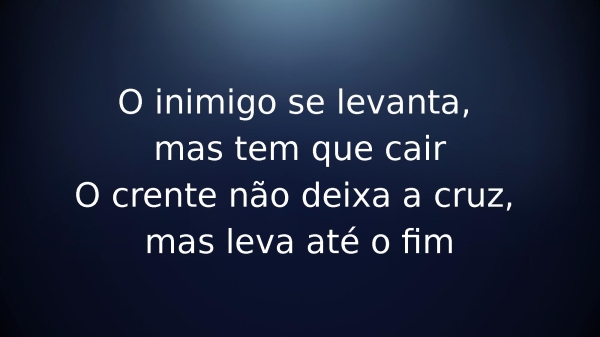 - O inimigo se levanta, mas tem que cairO crente não deixa a cruz, mas leva até o fim