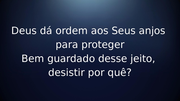 - Deus dá ordem aos Seus anjos para protegerBem guardado desse jeito, desistir por quê?