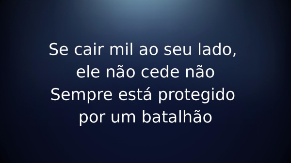 - Se cair mil ao seu lado, ele não cede nãoSempre está protegido por um batalhão