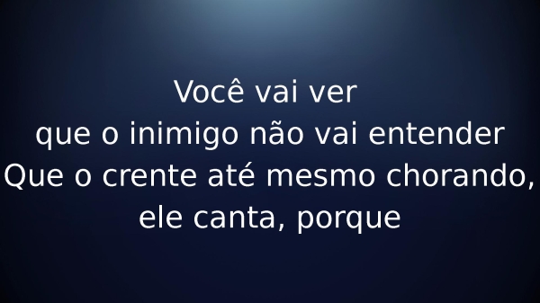 - Você vai ver que o inimigo não vai entenderQue o crente até mesmo chorando, ele canta, porque