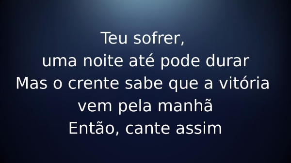 - Teu sofrer, uma noite até pode durarMas o crente sabe que a vitória vem pela manhãEntão, cante assim