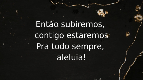 - Então subiremos, contigo estaremosPra todo sempre, aleluia!