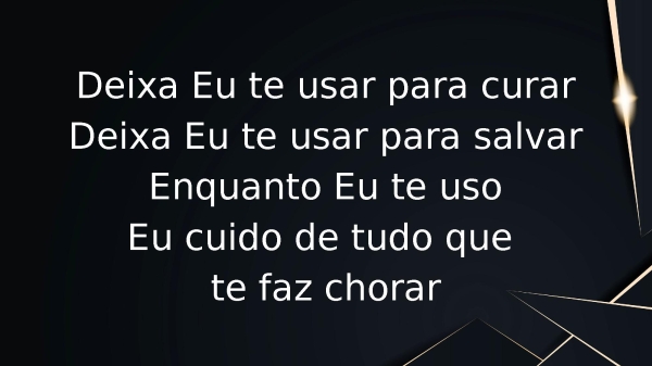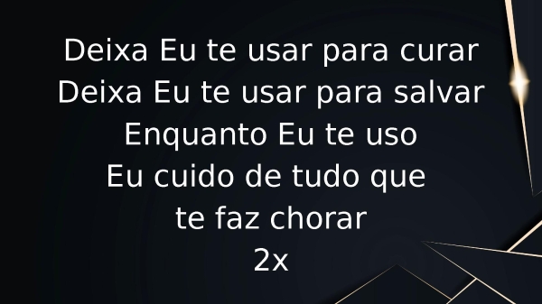 - Deixa Eu te usar para curarDeixa Eu te usar para salvarEnquanto Eu te usoEu cuido de tudo que te faz chorar