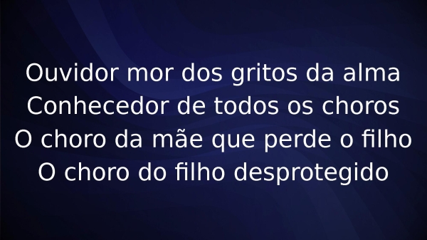 - Ouvidor mor dos gritos da almaConhecedor de todos os chorosO choro da mãe que perde o filhoO choro do filho desprotegido