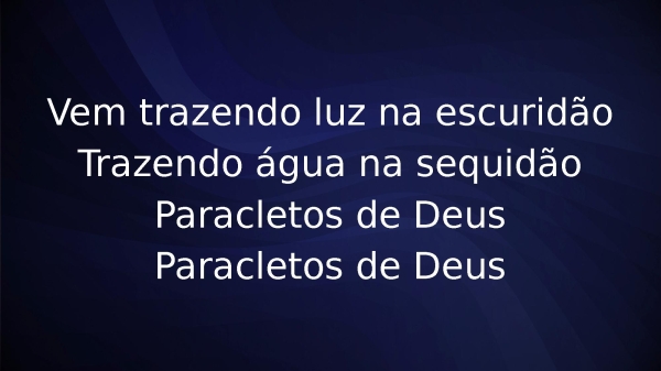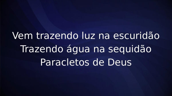 - Vem trazendo luz na escuridãoTrazendo água na sequidãoParacletos de Deus
