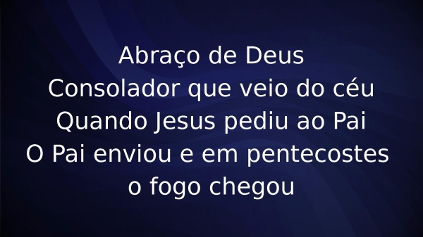 - Abraço de DeusConsolador que veio do céuQuando Jesus pediu ao PaiO Pai enviou e em pentecostes o fogo chegou