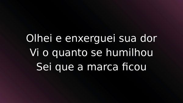 - Olhei e enxerguei sua dorVi o quanto se humilhouSei que a marca ficou
