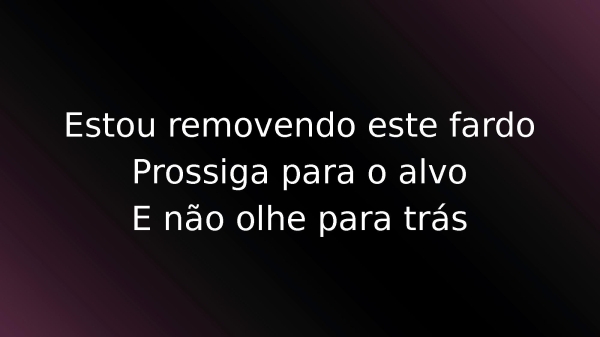 - Estou removendo este fardoProssiga para o alvoE não olhe para trás