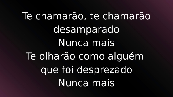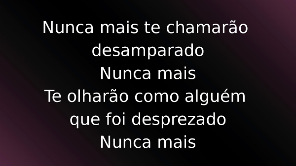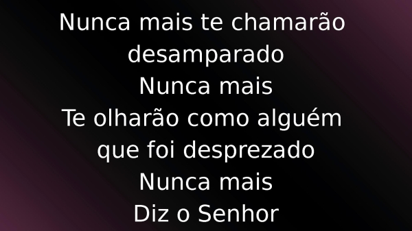 - Nunca mais te chamarão desamparadoNunca maisTe olharão como alguém que foi desprezadoNunca mais