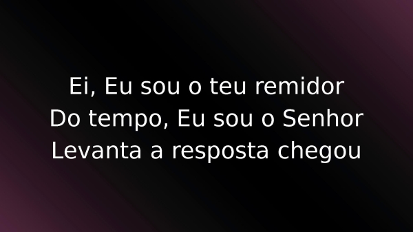 - Ei, Eu sou o teu remidorDo tempo, Eu sou o SenhorLevanta a resposta chegou