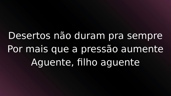 - Desertos não duram pra semprePor mais que a pressão aumenteAguente, filho aguente