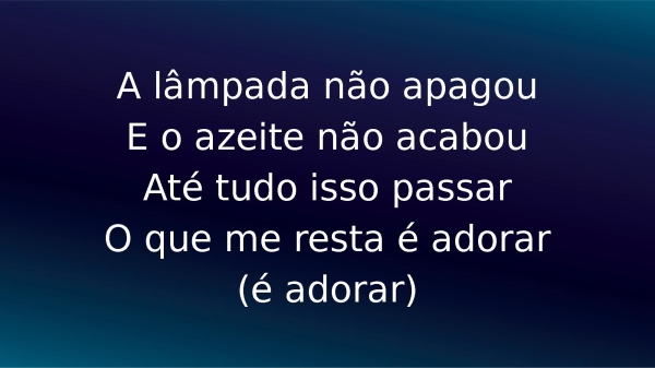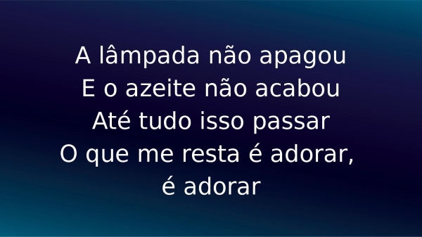 - A lâmpada não apagouE o azeite não acabouAté tudo isso passarO que me resta é adorar, é adorar