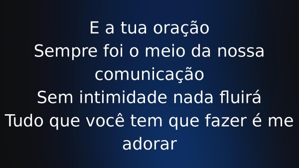 - E a tua oraçãoSempre foi o meio da nossa comunicaçãoSem intimidade nada fluiráTudo que você tem que fazer é me adorar