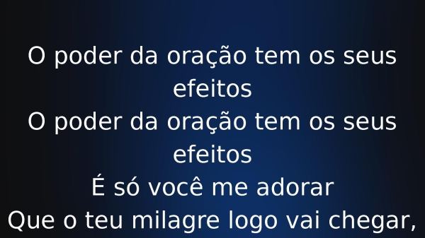 - O poder da oração tem os seus efeitosO poder da oração tem os seus efeitosÉ só você me adorarQue o teu milagre logo vai chegar, logo vai chegar