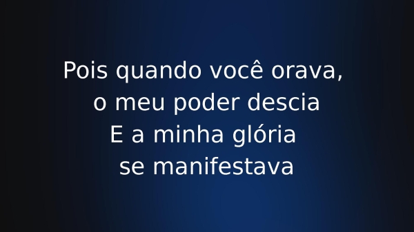 - Pois quando você orava, o meu poder desciaE a minha glória se manifestava